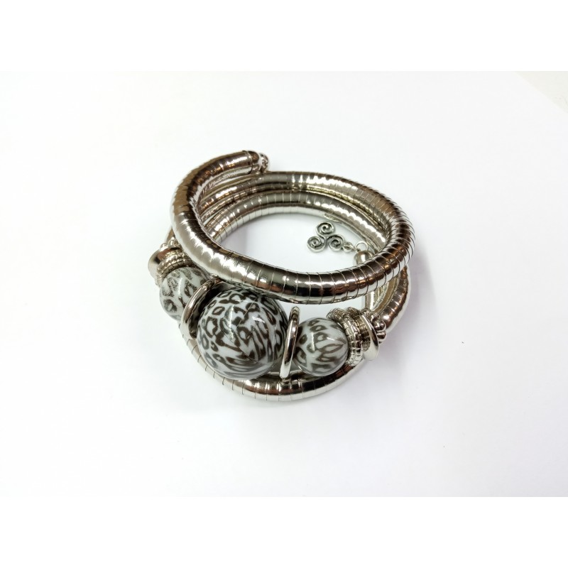 Brazalete enrollable de acero con abalorios, estado Nuevo sin etiquetas, material Acero, Color Plateado